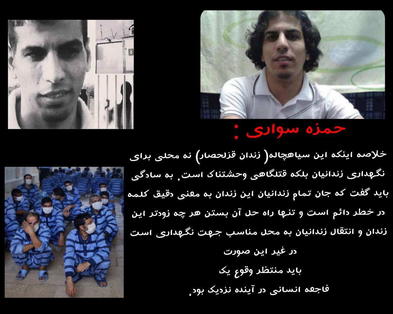 چند روز بعد گفتند که باید برای ادامه محکومیت تبعید به برازجان برگردم، من به برازجان تبعید شدم و حمزه و دیگر همبندیانم به قزلحصار تبعید شدند. انتقال به قزلحصار یعنی تشدید رنجهای زندانیانی مثل،حمزه،افشین،سعید ماسوری که بیش از دو دهه درگیر زندانند، یعنی خراب شدن وسایل ، از دست دادن فرصت شغلی و تحصیلی در گوهردشت که سالها برایش تلاش کرده بودند . حمزه پس از سالها تلاش جواز کار در نجاری بند را گرفته بود،درس می خواند … و تبعید به قزلحصار شکنجه گاهی مخوفتر از قبلی اعدام ها ،جنایتها …