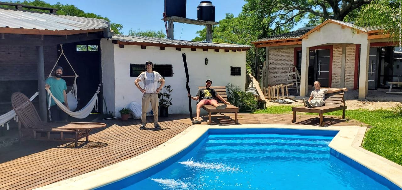 A la mañana salimos tempranito para Esquina con la camioneta del Cacho, el trailer. Y el Nano se iba en bondi, él se fue en bondi. Bueno, detalle más detalle menos, llegamos a Esquina. No me acuerdo a qué hora, después de mediodía debemos haber llegado, y ya teníamos reservado un alojamiento ahí en un complejo de cabañitas que se llama “Luna”, que está a una cuadra y media, menos, 70 metros. El camino de arena termina, muere, ahí en el río. Así que terminamos ahí de armar todo. Sacamos, bajamos los kayaks del trailer –venía todo atado así nomás, todo cargado a los… a granel. Entonces hubo que… bueno, cada uno armó su kayak, su equipo. Cuando dejamos todo listo cenamos (el que pudo durmió, el que no se lo comieron los nervios del arranque) y salimos a la mañanita temprano.