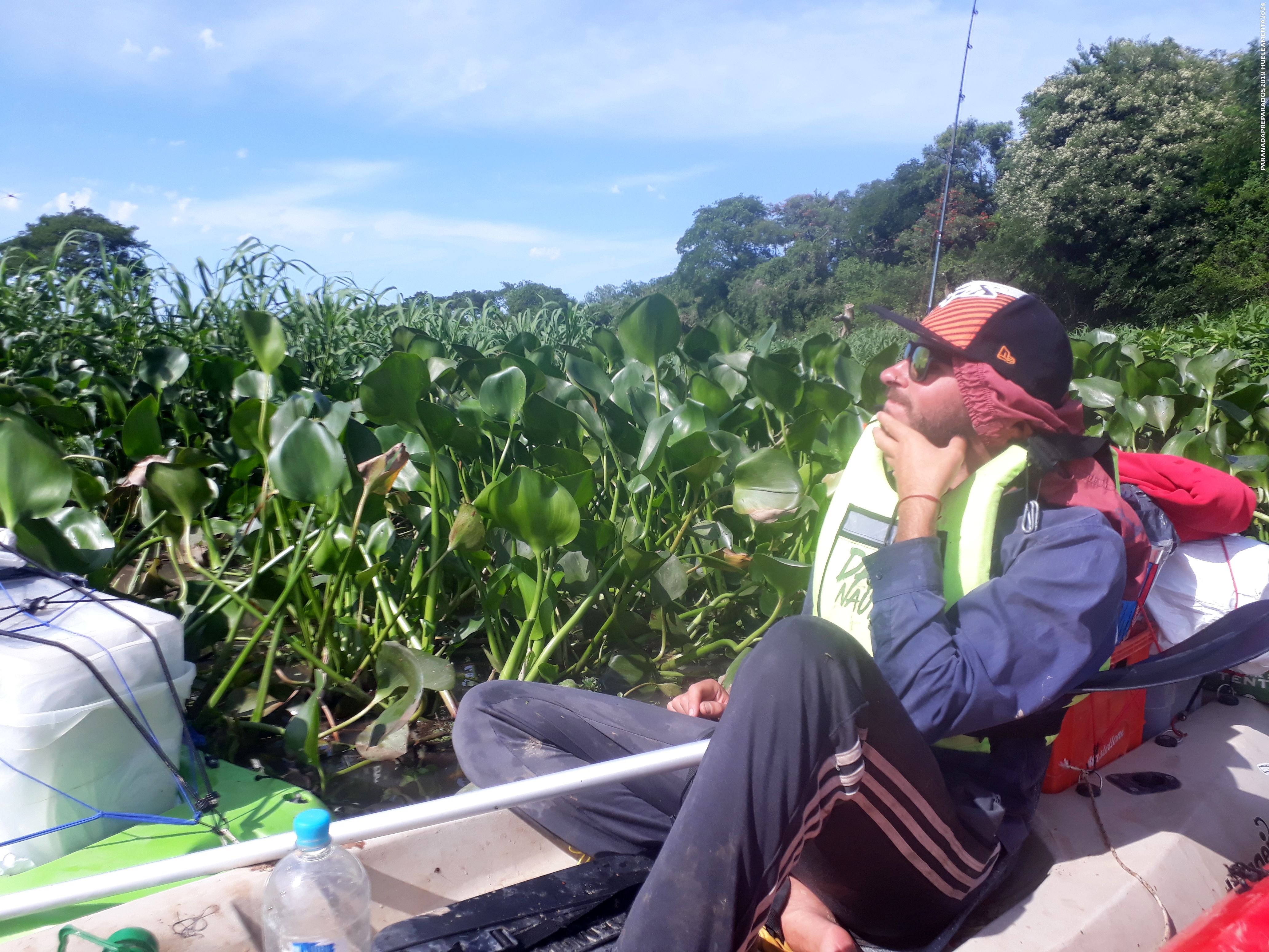 El problema es que a partir de San Javier el río ya estaba tan bajo que empezaba a complicarse por la falta de agua. Entonces las lagunas secas, los cauces que te metías mal y quedabas varado, quedabas tapiado… hay una que bueno, después vas a ver las fotos de la tapiada. Nos metimos en un arroyo que venía con una correntada bárbara y en un punto se tapió. Y buen, tuvimos que salir por la tierra, arrastrando los kayaks, a machete, rompiendo camalotes, qué sé yo, y salimos. Pero tuvimos que subir los kayaks y hacer por tierra todo un pedazo arrastrando los kayaks. Divino eso, fue tan heroico, todo tan lindo. Pero ya veníamos… ahí ya venís con el cansancio físico y qué sé yo de unos cuantos días y de cosas muy lindas, muy fluidas, y empieza a ponerse un poco más áspero. El paisaje cambia mucho. Porque empieza a no haber vegetación, en las orillas. Son ríos más de pampa, más pelados, un poco más chotos.