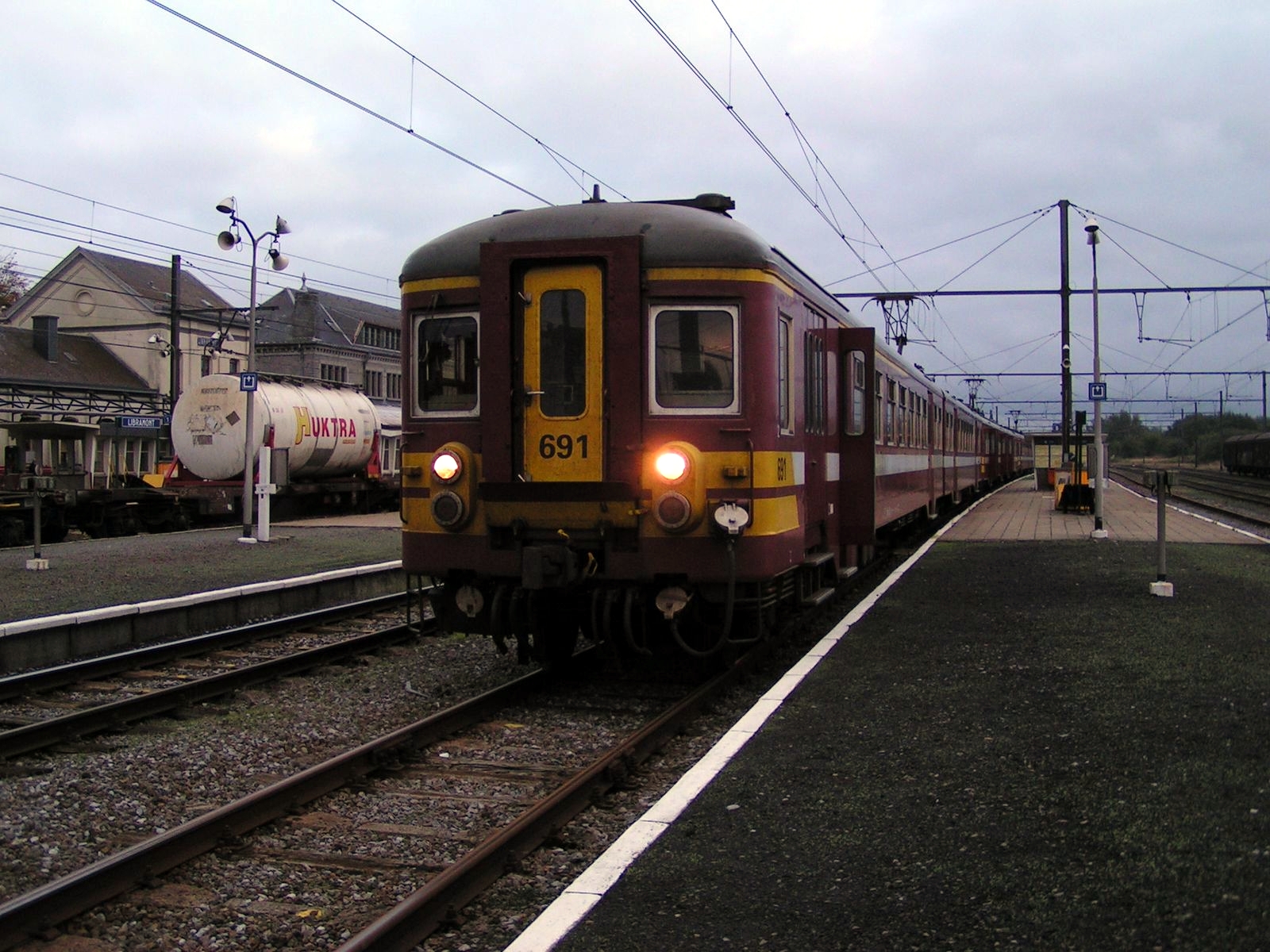 Evocation du train L 5790 en gare de Libramont avec les automotrices 691-711 et 686, cette rame a assuré le train L 5888 de Luxembourg à Libramont juste avant. - Photo de l’auteur